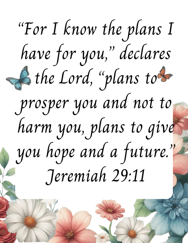 Bring peace and purpose into your space with this beautifully designed wall art featuring the beloved verse from Jeremiah 29:11: